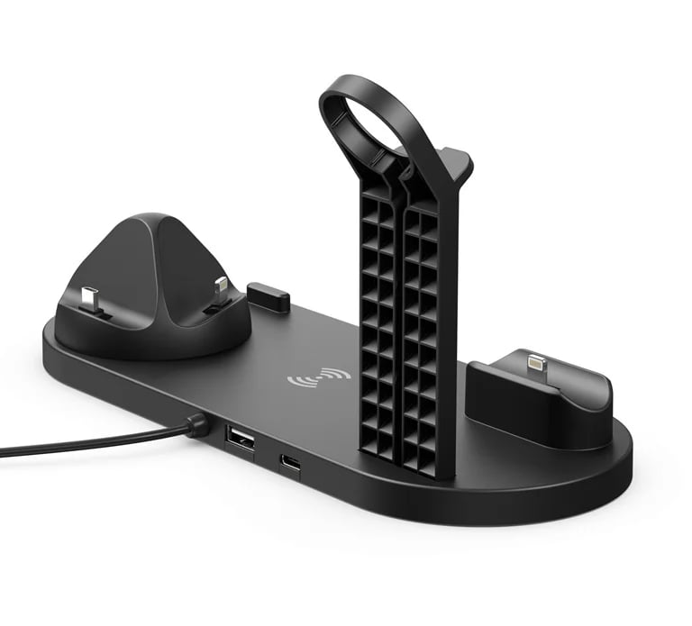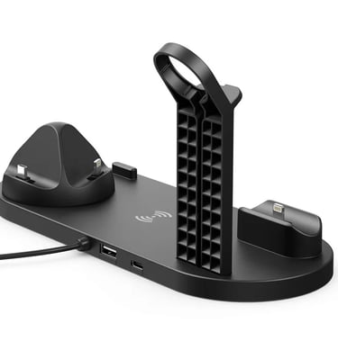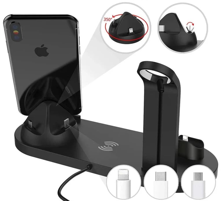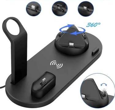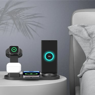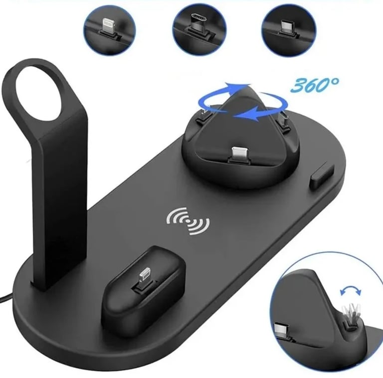 Estação de carregamento sem fio 5 em 1, solução rápida e eficiente.
